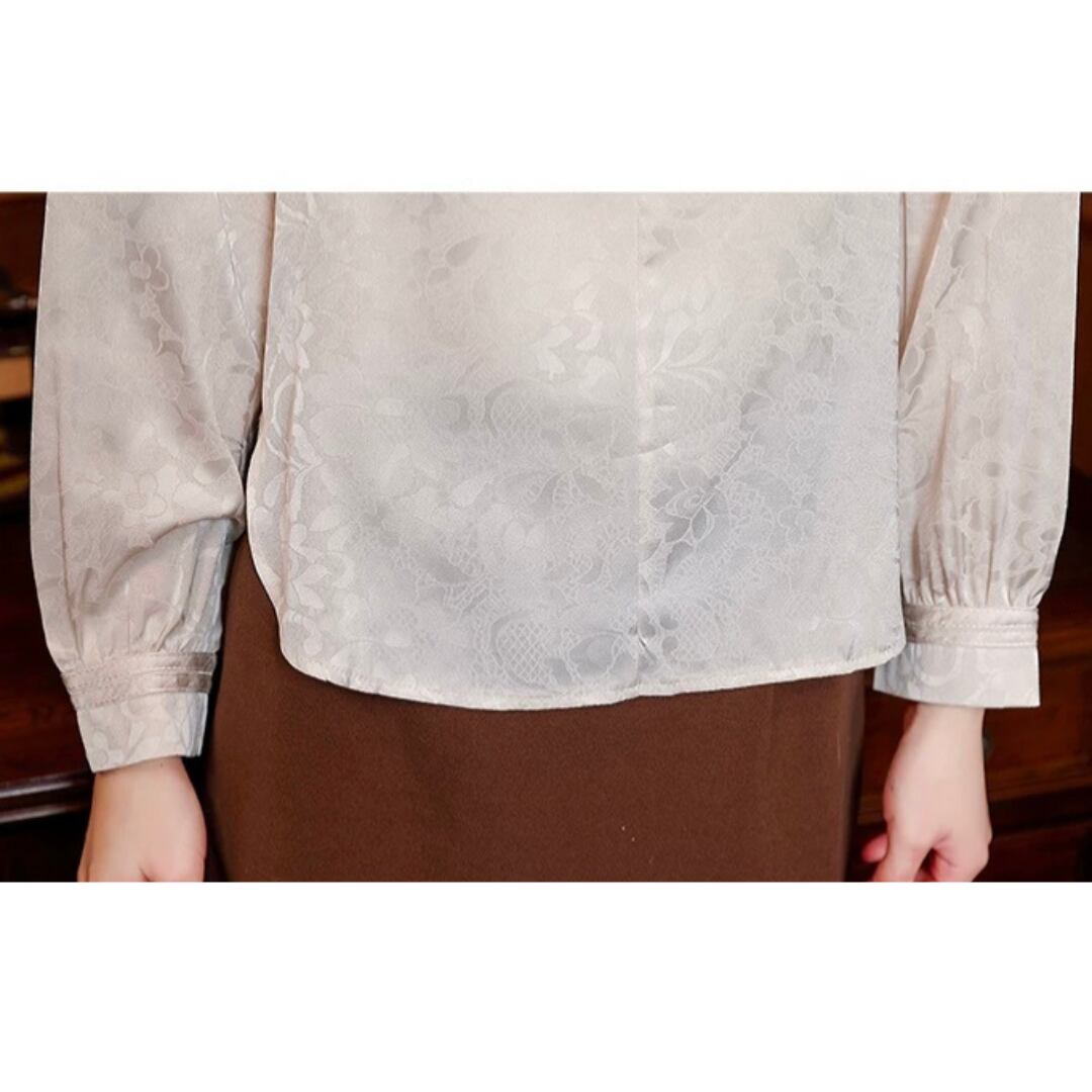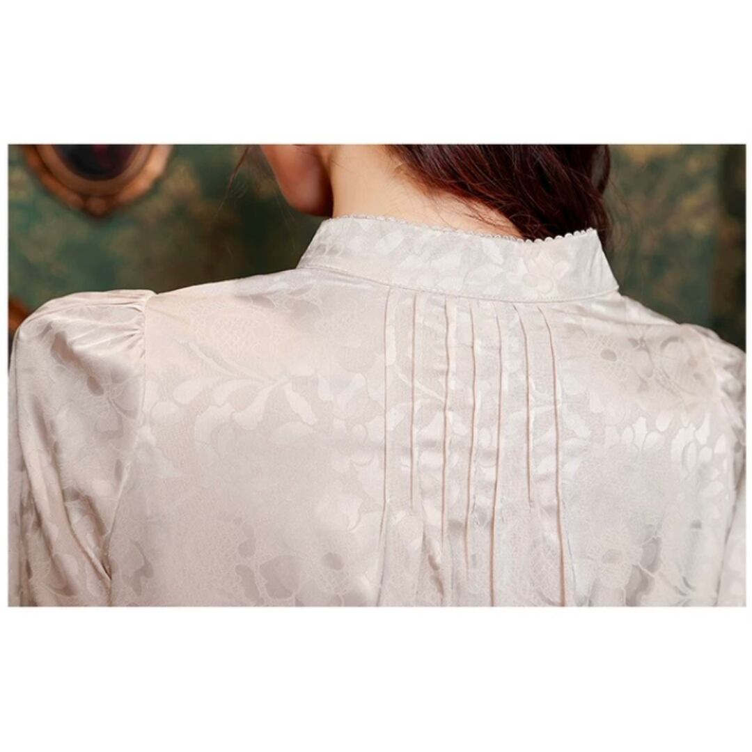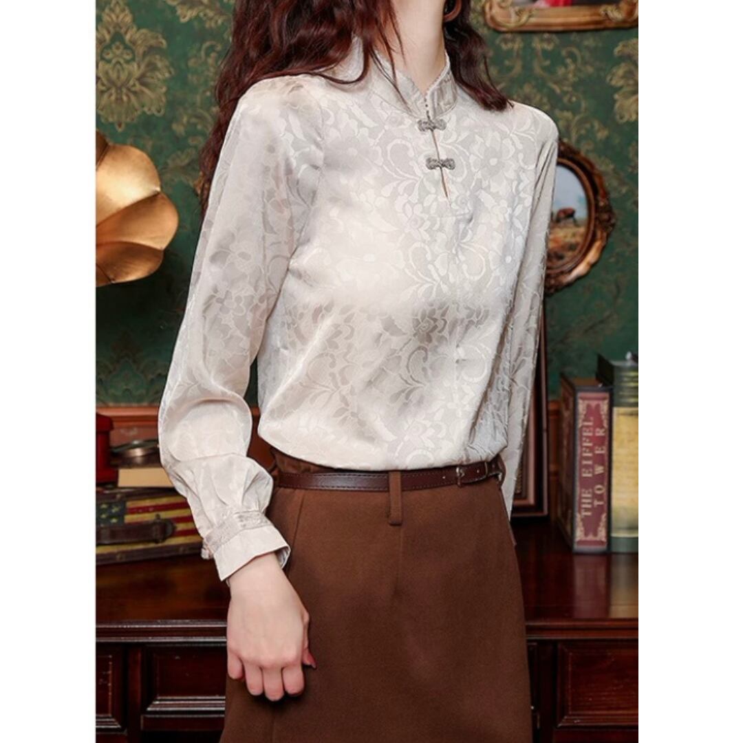 エレガントなチャイナ風デザインのブラウス。